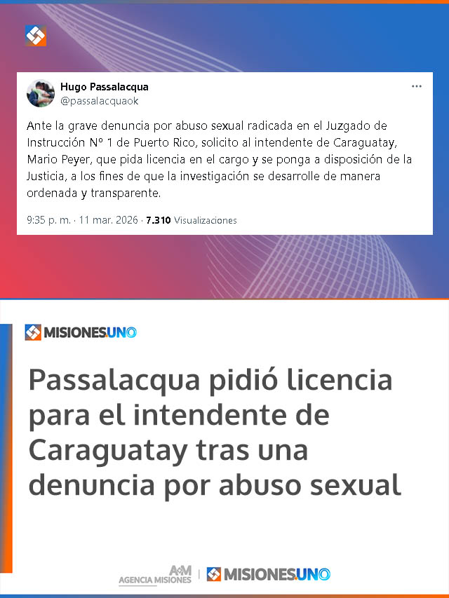 AGENCIA MISIONES.UNO | El gobernador de Misiones, Hugo Passalacqua, solicitó [...]