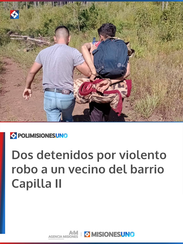 MISIONES.UNO – En Jardín América, la Policía detuvo a dos jóvenes acusados de ingresar a la vivienda de un vecino del barrio Capilla II, donde lo golpearon y le sustrajeron varios objetos. La investigación continúa para determinar si hay más personas involucradas.