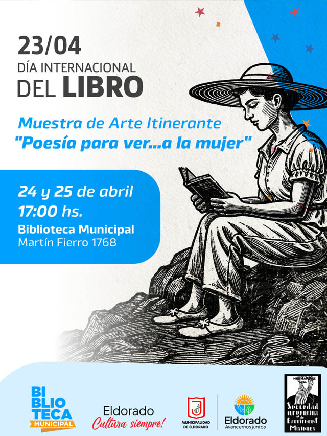 En el marco del Día Internacional del Libro, se llevará adelante en Eldorado una propuesta cultural que combina arte y literatura bajo el nombre “Poesía para ver… a la mujer”, una muestra itinerante que invita a la comunidad a reflexionar a través de distintas expresiones.