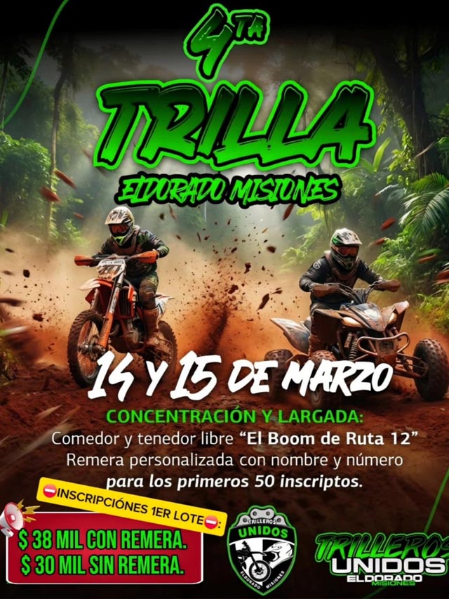 La propuesta convoca a quienes disfrutan de este tipo de competencias y encuentros al aire libre, en un entorno característico de la selva misionera. Desde la organización señalaron que el evento busca reunir a trilleros y amantes del deporte motor en un espacio de camaradería y recreación.