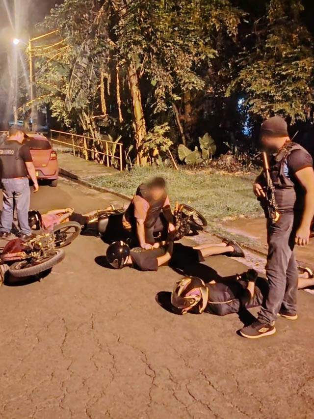 El procedimiento se registró cerca de las 02:00 en la zona de calle Arenhard, kilómetro 11, donde los uniformados detectaron a los implicados desplazándose en dos motocicletas, presuntamente vigilando inmuebles del lugar.