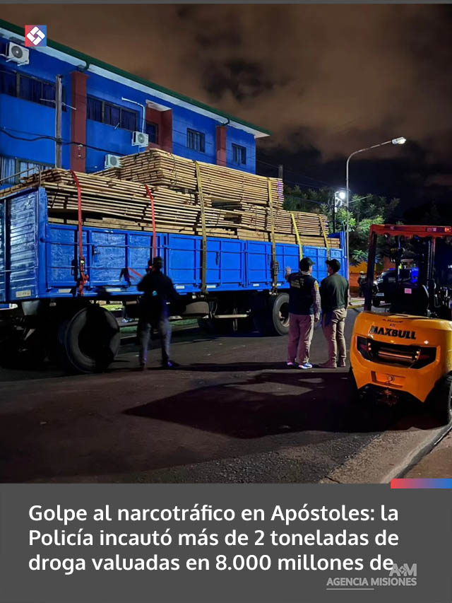 AGENCIA MISIONES.UNO | En un procedimiento clave contra el crimen organizado, la Policía de Misiones interceptó anoche en la localidad de Apóstoles un camión que transportaba un cargamento superior a las dos toneladas de estupefacientes. La sustancia se encontraba oculta entre una carga de maderas, en un intento por evadir los controles viales mediante una estructura de logística y ocultamiento.